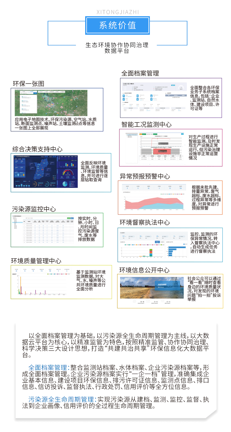 互動平臺:搭建政府、企業、公眾三方互動平臺,促進政府環保管理及執法全過程公開、透明,促進企業環保管理自我監督、自查自糾、及時整改,提升公眾對環境質量的知情權、監督權和參與權。政府、企業、公眾三方形成環保社會行動合力,共建共治共享,不斷促進環保管理能力提升。