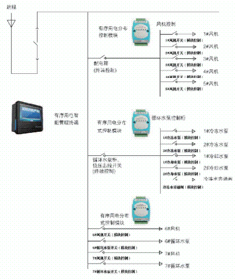 非工業用戶有序用電管理系統是一種分布式快速響應機制,將有序用電智能管理終端與分布式控制模塊相結合,使用戶可參與有序用電預案制定,使用簡單可靠的控制策略,通過對中央空調系統部分設備的智能化精細控制,在不影響設備安全運行的情況下,快速有效地調整中央空調總負荷水平。